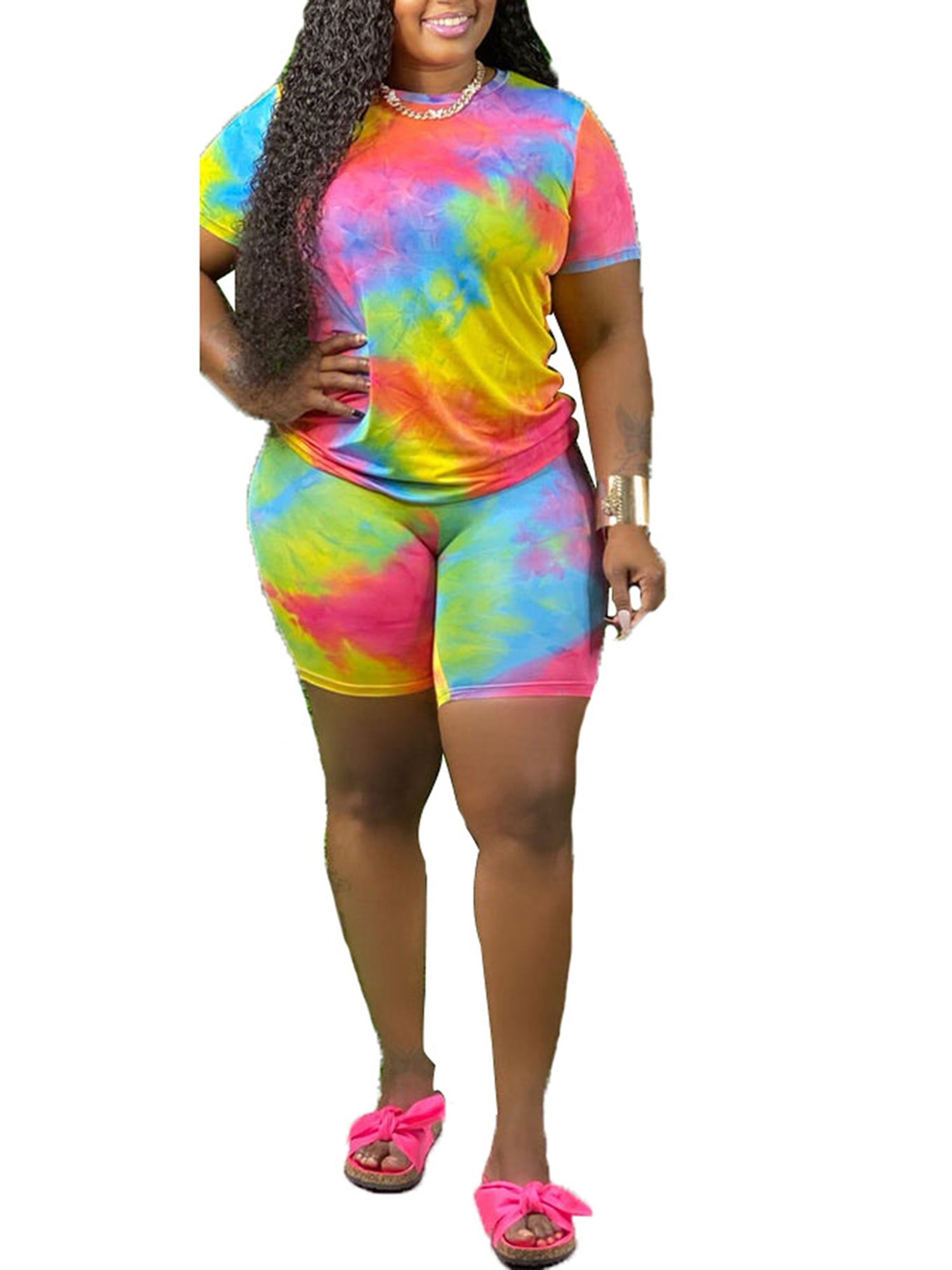 Inevnen 2 Piece Shorts Set For Women Tracksuit Tie Dye Short Sleeve Top Shorts Lounge Wear Outfits Biker Shorts Set Walmart Com